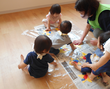 先生がお星様に色を付けてるよ~!何をするのかな~??と