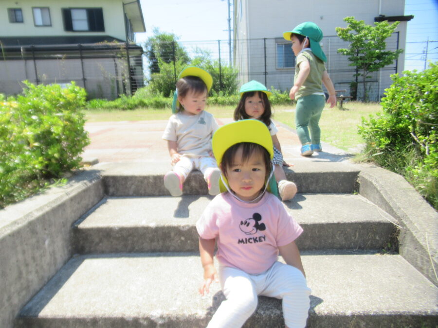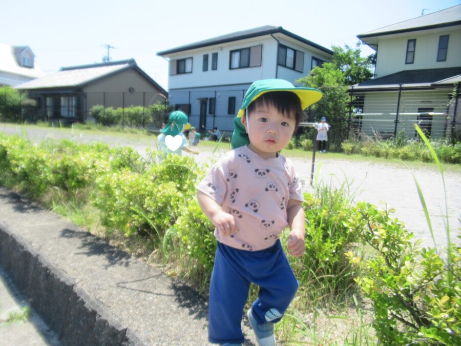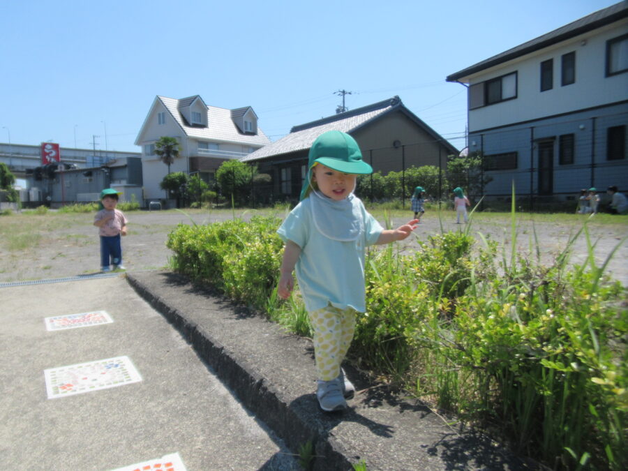 植木のコンクリートのところを歩くのが楽しいようで、一人でテクテク歩いて行きます🎵