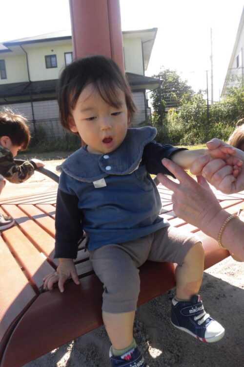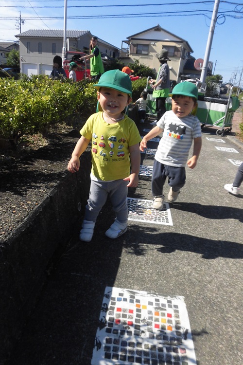 お散歩に出かけるとポカポカと暖かく、お友だちと嬉しそうに歩いたりカートから景色を楽しんでいる様子がありました!