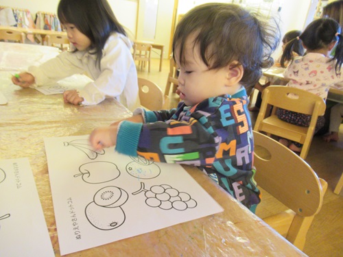 果物の塗り絵に興味を持って参加していましたよ🍎