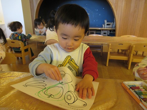 クレヨンで塗り込んでいる様子も見られ、好きな色を選んで取り組んでいました🖍