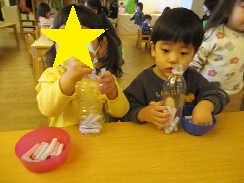 指先を上手に使ってストローをペットボトルの中に入れることができたね!