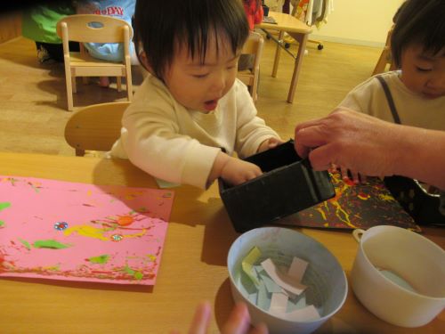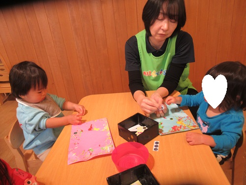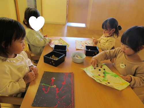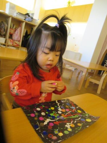 みんなとっても集中して取り組んでいます!!指先を上手に使って、好きなところにペタっ!!お友だちの様子を見ながら、自分でも挑戦してみようとする姿が見られました✨✨