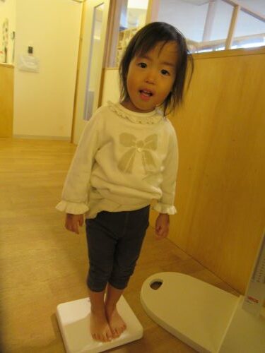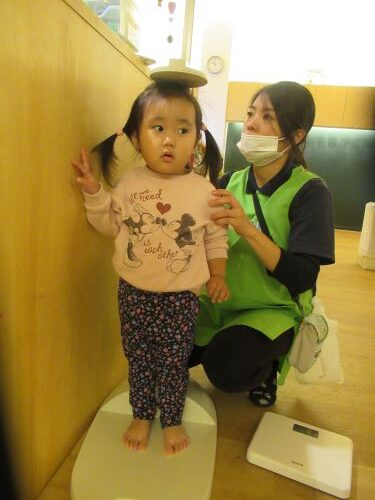 今月度の身体測定を行いました!「大きくなったかなやるよ」という先生の言葉を聞いて、楽しみに先生のところに来てくれます!