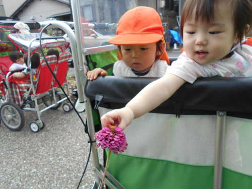 ピンク色のお花を見つけては手を伸ばしていました^^