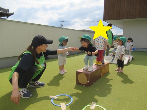 今日は気温が下がり心地よい風がふいていて、屋上園庭で身体を動かしながらのびのびと過ごすことができました😊✨