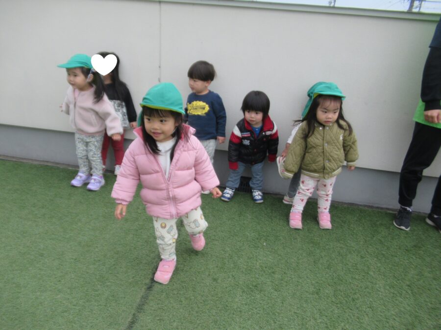 先生の声掛けでかけっこが始まりました!「よーい」の合図で、ポーズがキマッていましたよ✨✨