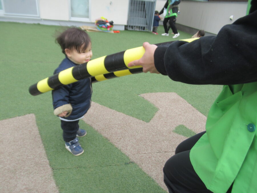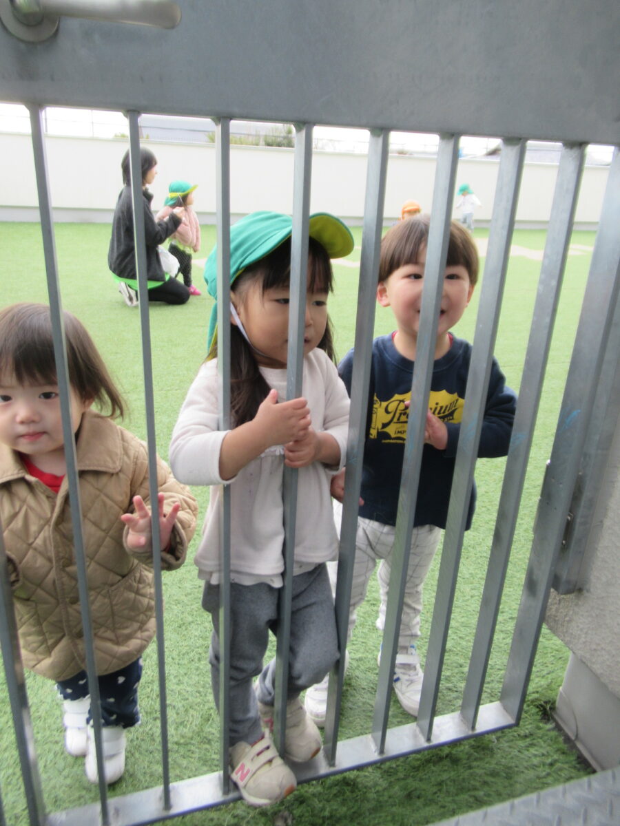 屋上に続く階段に向かって「ぞうさーん、出ておいで!」「うさぎさーん、出ておいで!」と大きな声で呼んでいました😊