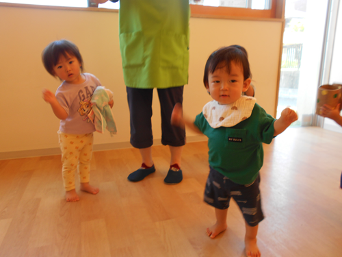 最初に♪しあわせなら手をたたこうで身体を動かしました!