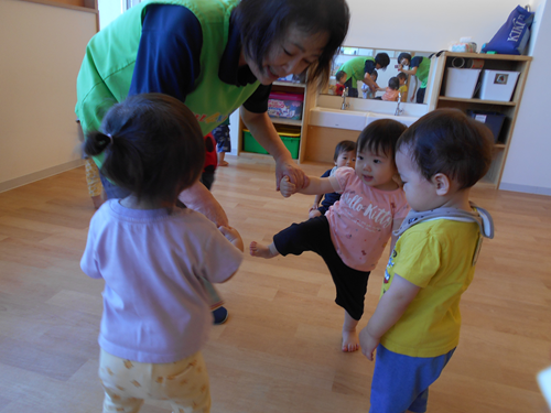 最後のフレーズに合わせて 皆で手を繋いでいますよ。