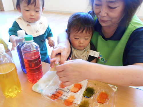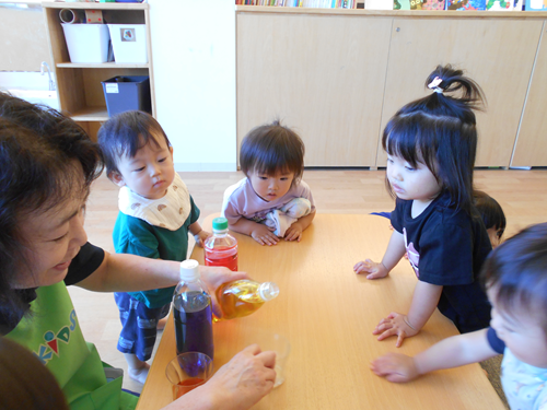 さあ、今日は色水で遊びます!