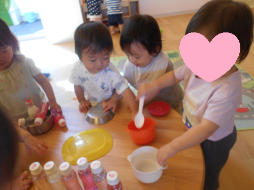 何ができるのかな?すぐそばにジュースも並べてくれたお友だちもいました🍹
