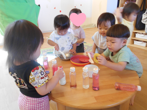 お友だちのペットボトルにお水を注いであげたり💕