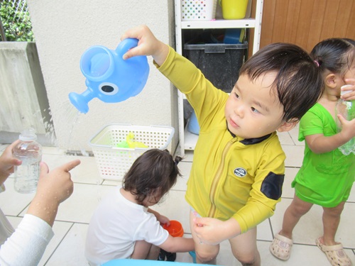 お友だちとジョウロで水をかけ合って、遊んでいる様子も見られるようになってきました!