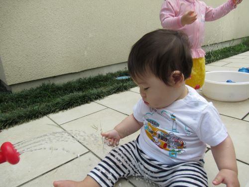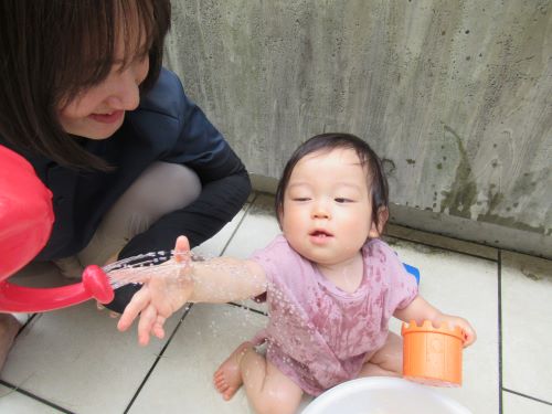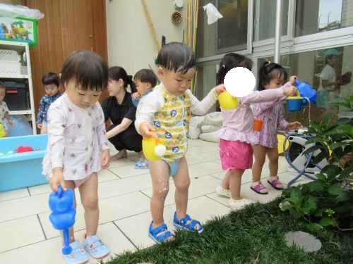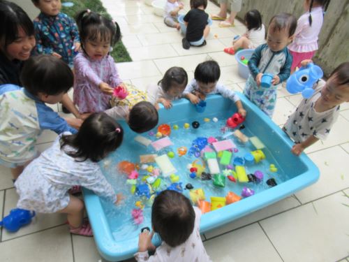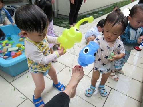 ひよこ組さん今日も先生たちとお水遊びを楽しみました😆