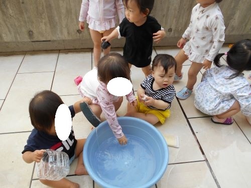 今日は氷を出したので入っているところは冷たく気持ちよく水に触れて遊ぶ子がいました。