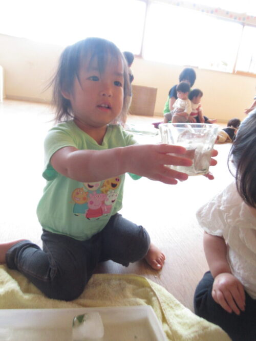 お部屋の中でゆったりと氷を触って遊びましたよ😆