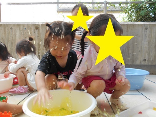 今日は、水あそびと色水氷を使って楽しみました😄✨