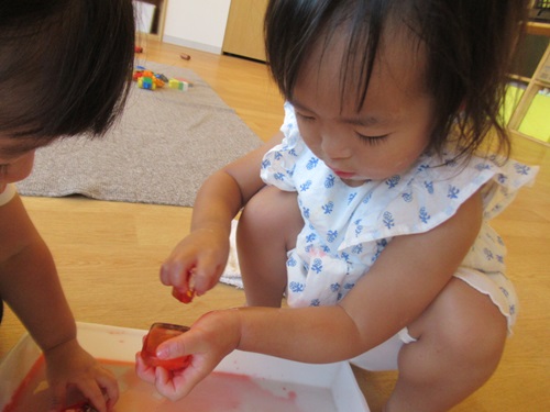 お部屋で遊んでいたお友だちも氷あそびを楽しみましたよ♫