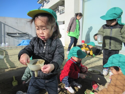 黙々と砂場あそびをしているお友だち🎵