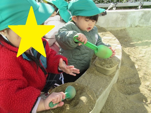 好きな玩具を選んで、砂場あそびを楽しんでいます🌟