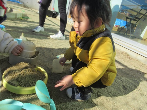 砂場玩具の使い方を理解して上手に遊べるようになってきました!