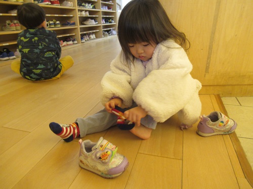 自分で上着を着ようとしたり、自分で靴下や靴を履こうと頑張ってくれているりすぐみさんです✨