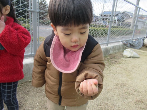 砂を手のひらで掴んで、ざらざらとした感触をじっくりと味わったり、砂が落ちていく様子に興味津々✨
