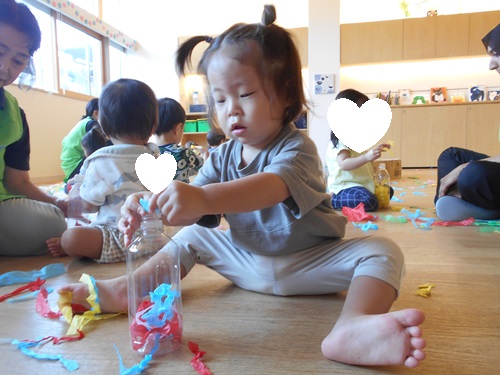 びりびりと破いたり上から落としてひらひらする様子に興味津々です😀