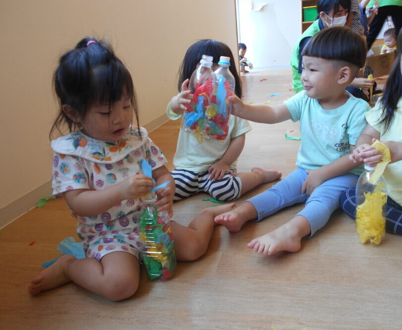 明日は今日みんなで作ってくれた花紙のペットボトルで遊ぶよ🌟