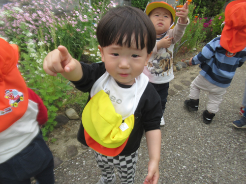 おはながたくさんのところに着いてすぐ、大きな音で飛んできた飛行機を見つけて指差しで押せてくれるおともだち👦 手を振る様子もありましたよ👋