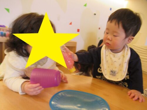 お友だちの様子に気付いて触れてみようとしたり、おもちゃのやりとりをしていたりと楽しく過ごせる姿が増えてきましたよ😄