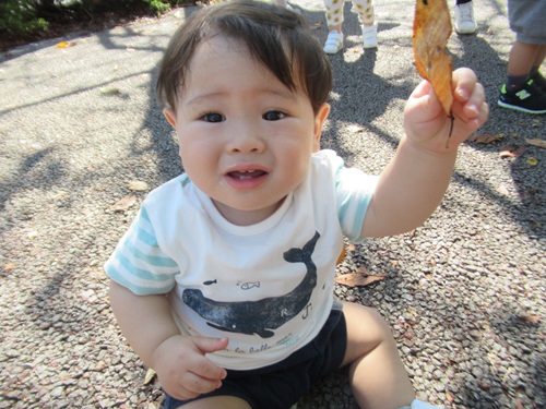 黄色の葉っぱを見つけたり、落ち葉の上を歩いて楽しみました♫