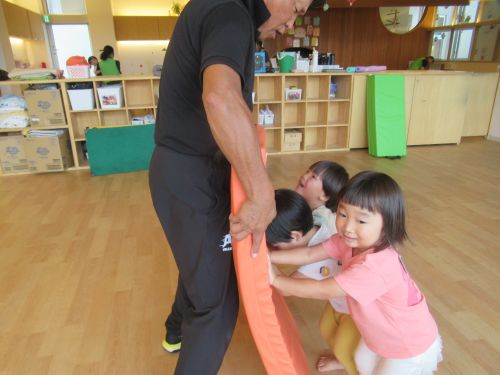 最後にはおともだちと協力してマット越しの山田先生と「はっけよい、のこった!!!」とおすもうゲームもしました🎵