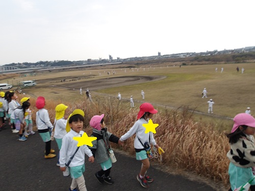 散歩に出かけたお友だちは、松河戸グラウンドに行きました🎶