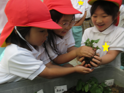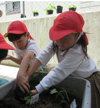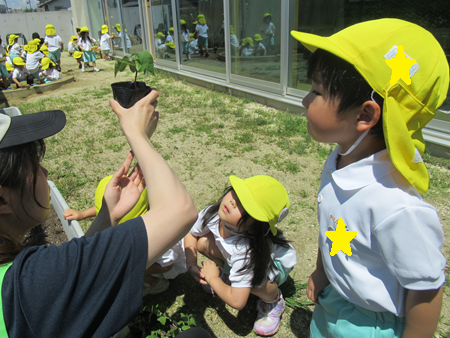 早速、グループのお友だちと協力しながら穴を空けるお友だち、土をかけるお友だち等子どもたち同士で決めていました✨