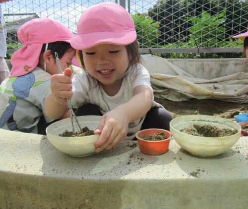 春先の頃よりもごっこ遊びが盛んになってきて、「まぜまぜ、ママみたい💗」とニコニコでお料理をしたり、ジュース屋さんを営んだりと遊びの世界に入り込んで楽しんでいました😍