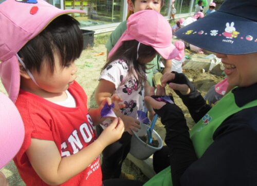 「アサガオ、採ってもいいの?」と植物を大切にしようとする子どもたちの声が聞こえてきました。