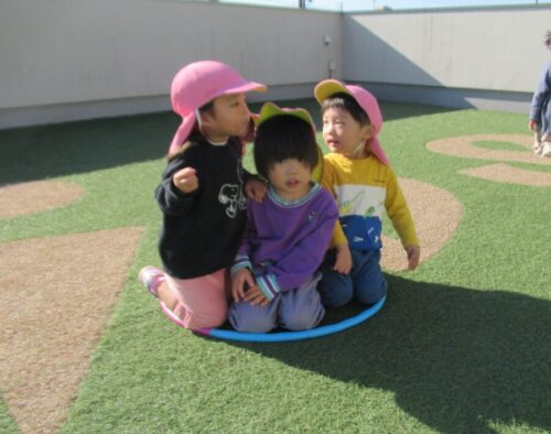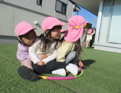 「ほら!ここあいてるよ!!」「こっちにおいで!!」とフラフープの中で身を小さくしてお友だちも一緒に入れてあげようとする優しい姿がたくさん見られました💗