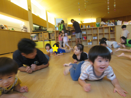 中から覗いてお友だちや先生と「やっほー!」目が合うとにっこりでした💕