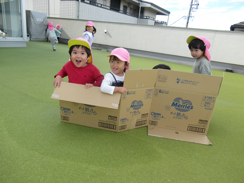 ダンボールを出しておくと、「ばぁ!!」と遊んでみたり、