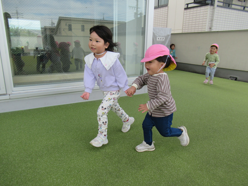 お友だちと一緒にしっぽを取りに行ったり、