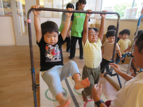 鉄棒やマットが登場して、みんな興味津々👀✨