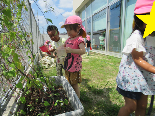 先生がお水をあげているのに気づいて、お水をあげていましたよ🌞