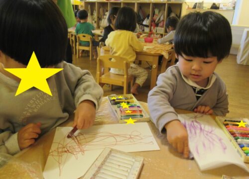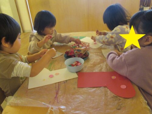 お友だちの様子を見ながらも好きなようにお絵描きをしたり、お友だちとモノの共有しながらのりを付けたりと思い思いにクリスマスソックスを飾り付けしました😊