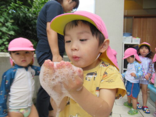 とても暑い日だったので、みんな気持ち良くお水遊び・泡遊びを楽しむことが出来ましたよ!✨