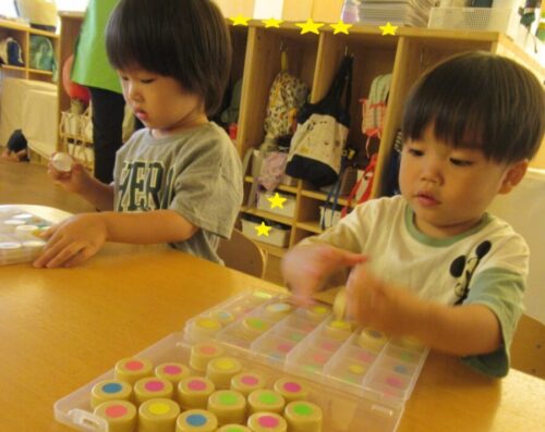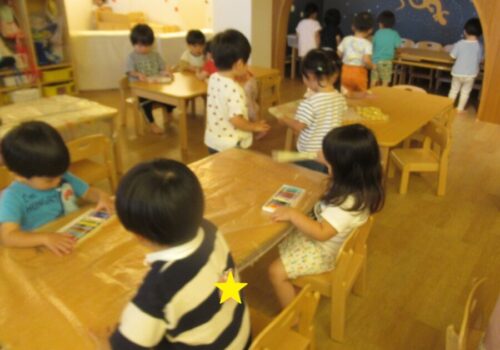 お友だちの作品に目を向けながら「一緒!」とニコニコで取り組んでいました!