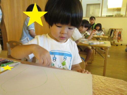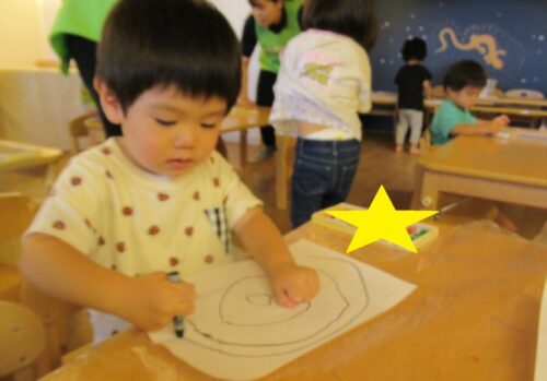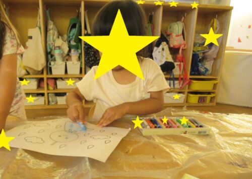 クレヨン遊びを選んだお友だちはぬりえか自由帳を選んで好きなように描いていました😊