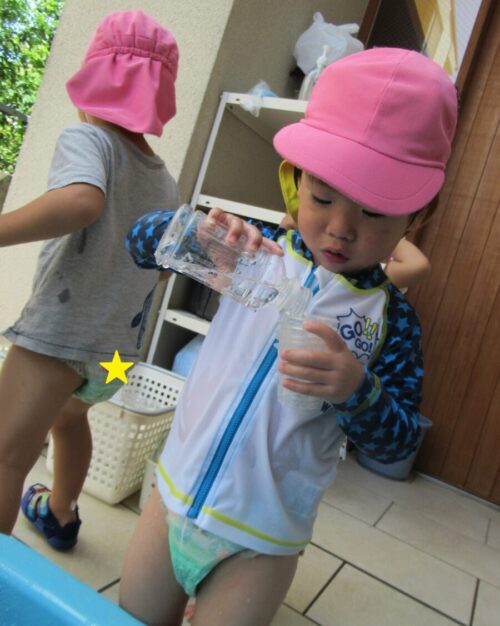 水遊びの着替えでは、自分でできることが少しずつ増えてスムーズに着替えられるようになってきました👍