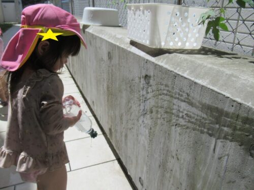 今日の水遊びでは、ペットボトルシャワーに挑戦👍